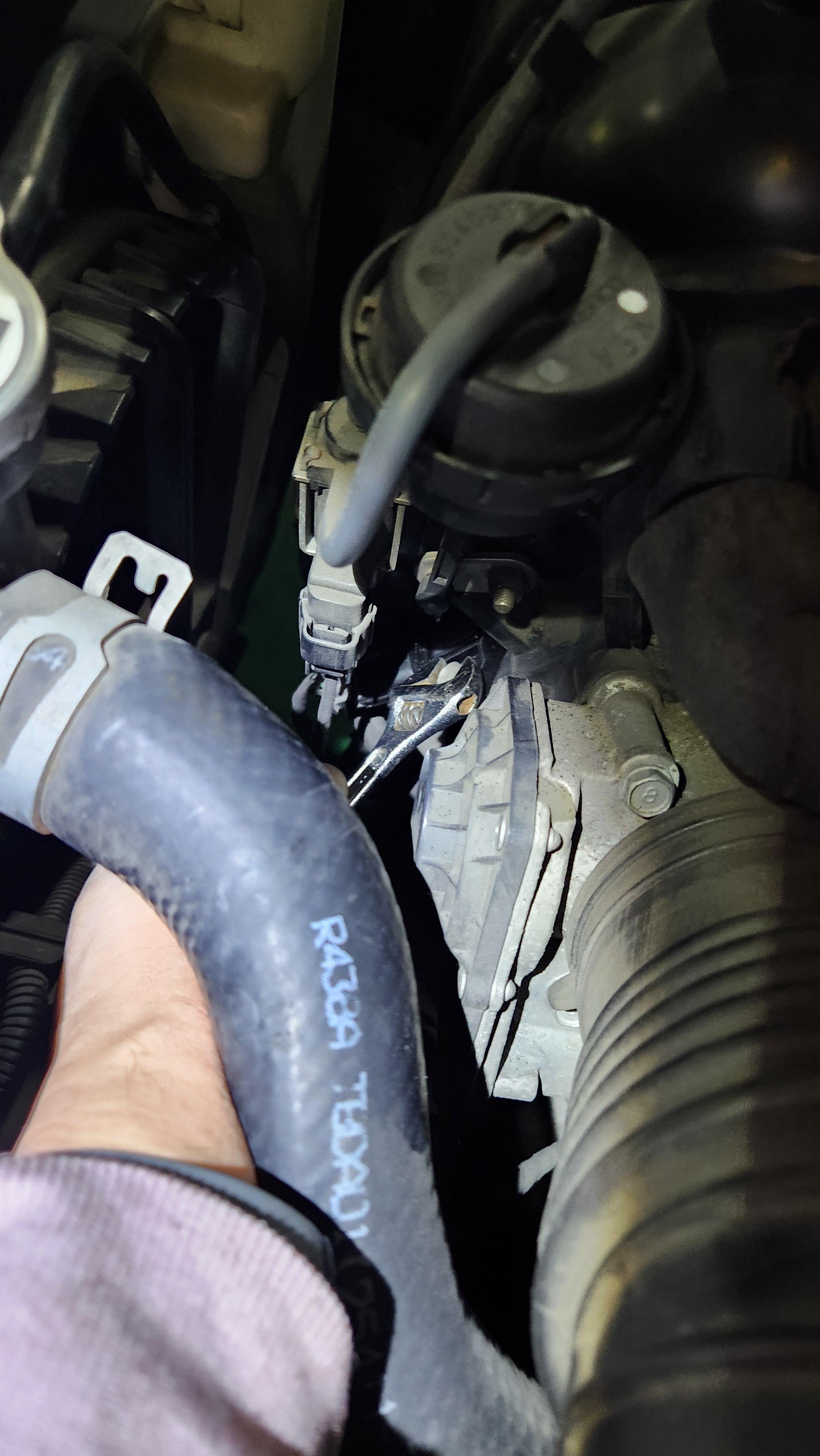 스로틀밸브 주변에 옆 쪽에 10mm 볼트로 체결이 되어 있는데 공간이 너무 협소해서 공구와 손이 잘 안 들어가서